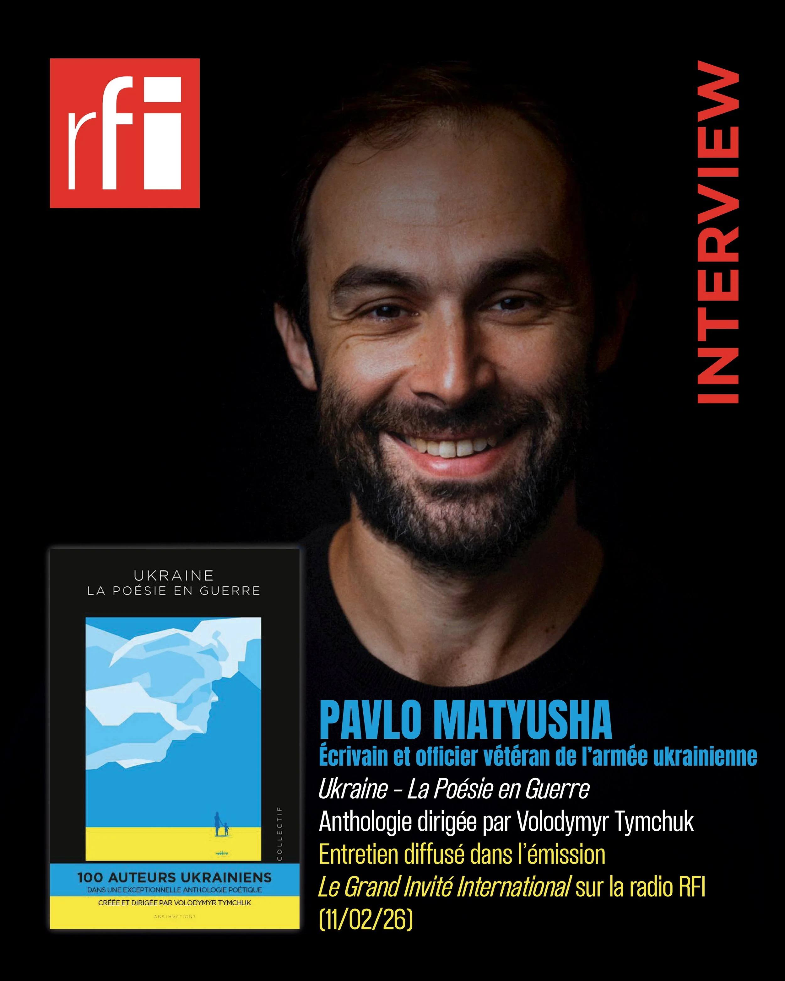 L’un des 100 auteurs d’Ukraine, la Poésie en Guerre, Pavlo Matyusha, écrivain et officier vétéran de l’armée ukrainienne, était l'invité d’Arnaud Pontus dans l’émission Le Grand Invité International sur RFI ce 11 février 2026.